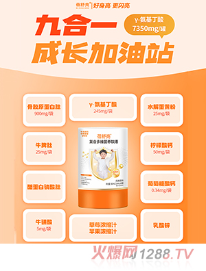 3、蘊含九種營養(yǎng)成分,包括γ- 氨基丁酸、骨膠原蛋白肽、水解蛋黃粉、牛脾肽、檸檬酸鈣、葡萄糖酸鈣、酪蛋白磷酸肽、;撬、乳酸鋅,營養(yǎng)搭配豐富。