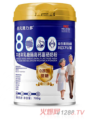 圣元港力多中老年乳糖酶高鈣富硒奶粉,凈含量 700g,添加 8 億 CFU / 罐益生菌,其中包含專利號為 ZL 2021 11335753.4 的專利益生菌凝結(jié)魏茨曼氏菌 BCN019。同時,產(chǎn)品還添加骨膠原蛋白肽、大豆蛋白肽、茶葉茶氨酸、多種維生素、酸棗仁粉、乳礦物鹽、乳糖酶與葛根粉,且 0 添加蔗糖,從成分搭配到配方設(shè)計,全方位貼合中老年群體需求。